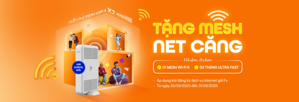 •  WiFi 6 miễn phí Tặng kèm AP phụ khi đăng ký gói F1, F2
