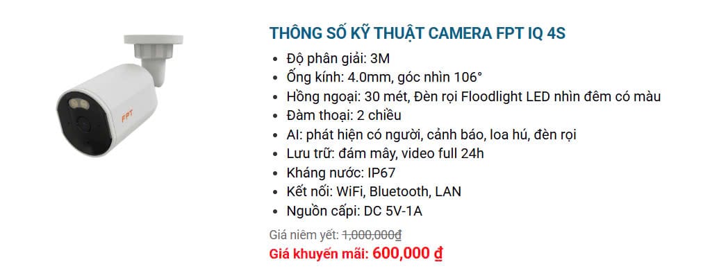 Bảng giá Cloud Camera FPT