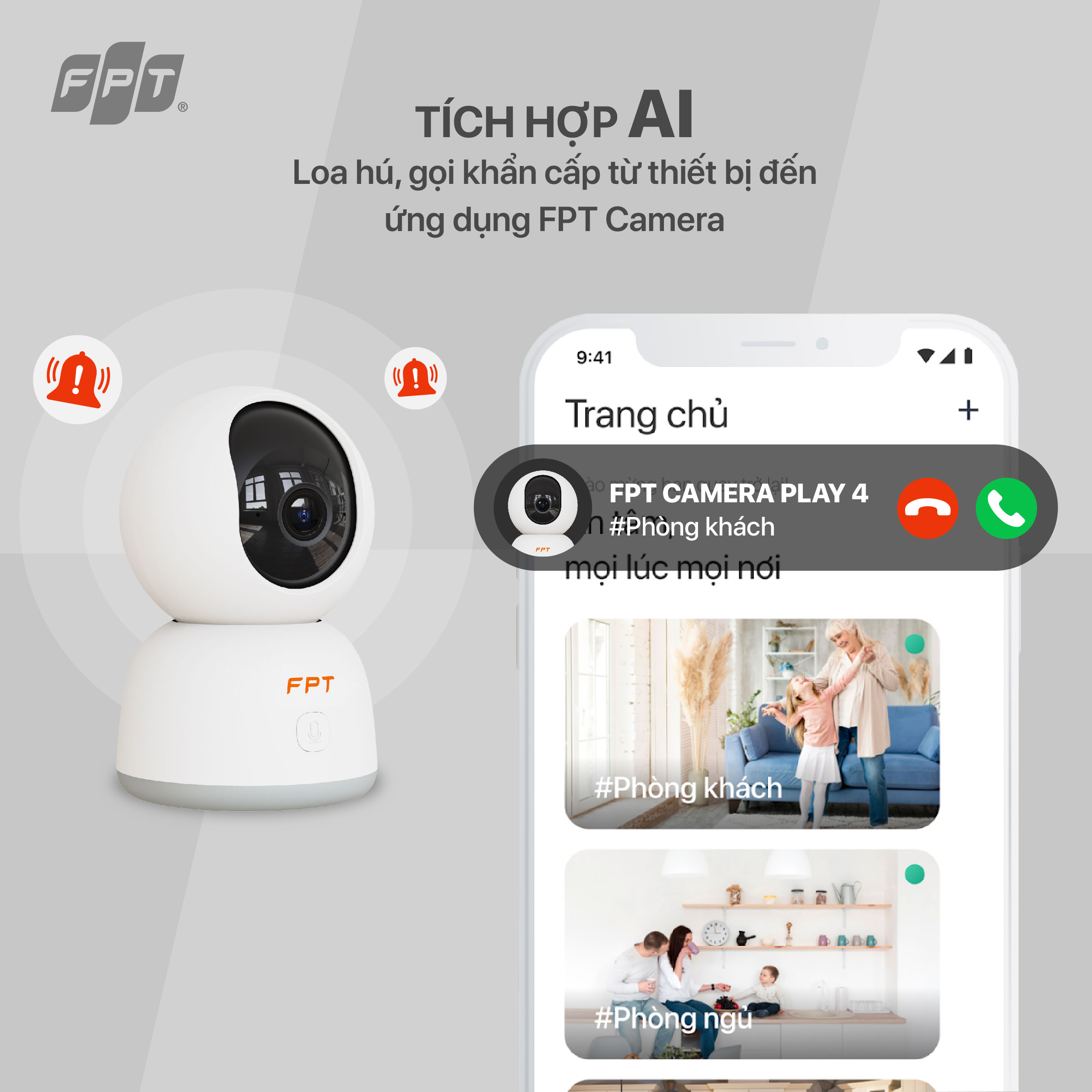 • FPT Camera Play 4 là dòng thiết bị FPT Camera chuyên dụng để lắp đặt trong nhà với chuẩn hình ảnh 3MP.